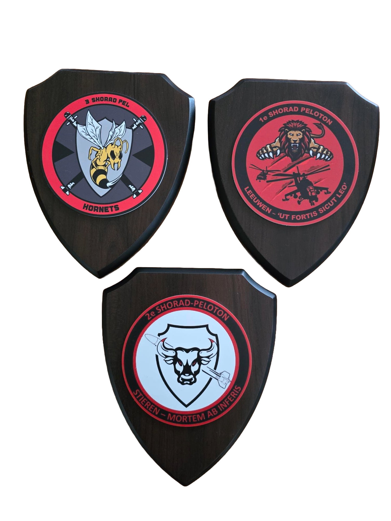 Snel Braber is al bijna 60 jaar marktleider in het ontwerpen en vervaardigen van diverse wapenschilden. Geheel vervaardigd op maat en naar uw wensen. Gemonteerd op diverse houten ondergronden. Deze wapenschildjes maken wij o.a. voor Defensie, Brandweer, Politie en diverse Golfclubs.Wapenschildjes in Reliëf, Silkscreenschildjes, Domingschildjes, Screenschildjes, Vikureenschildjes etc.Aangezien wij een Groothandel zijn en deze artikelen speciaal vervaardigd worden, produceren wij niet per stuk. Aantallen zijn afhankelijk van het productieproces. Vraag ons naar de vele mogelijkheden.