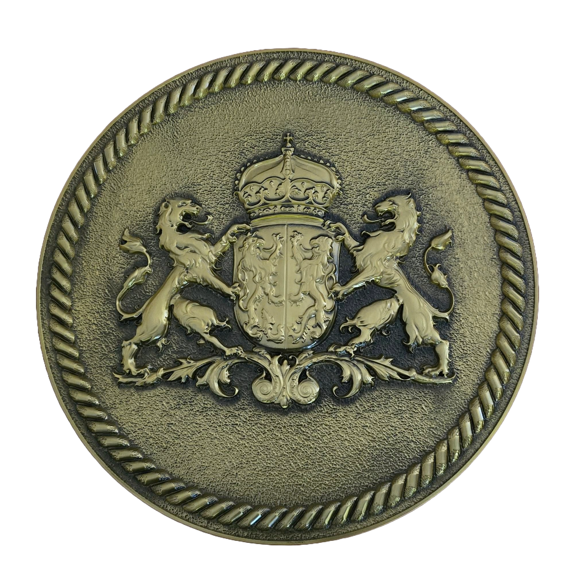Wapenschild silkscreen op massief hout met 3D metalen embleem & 3D metalen kroontje