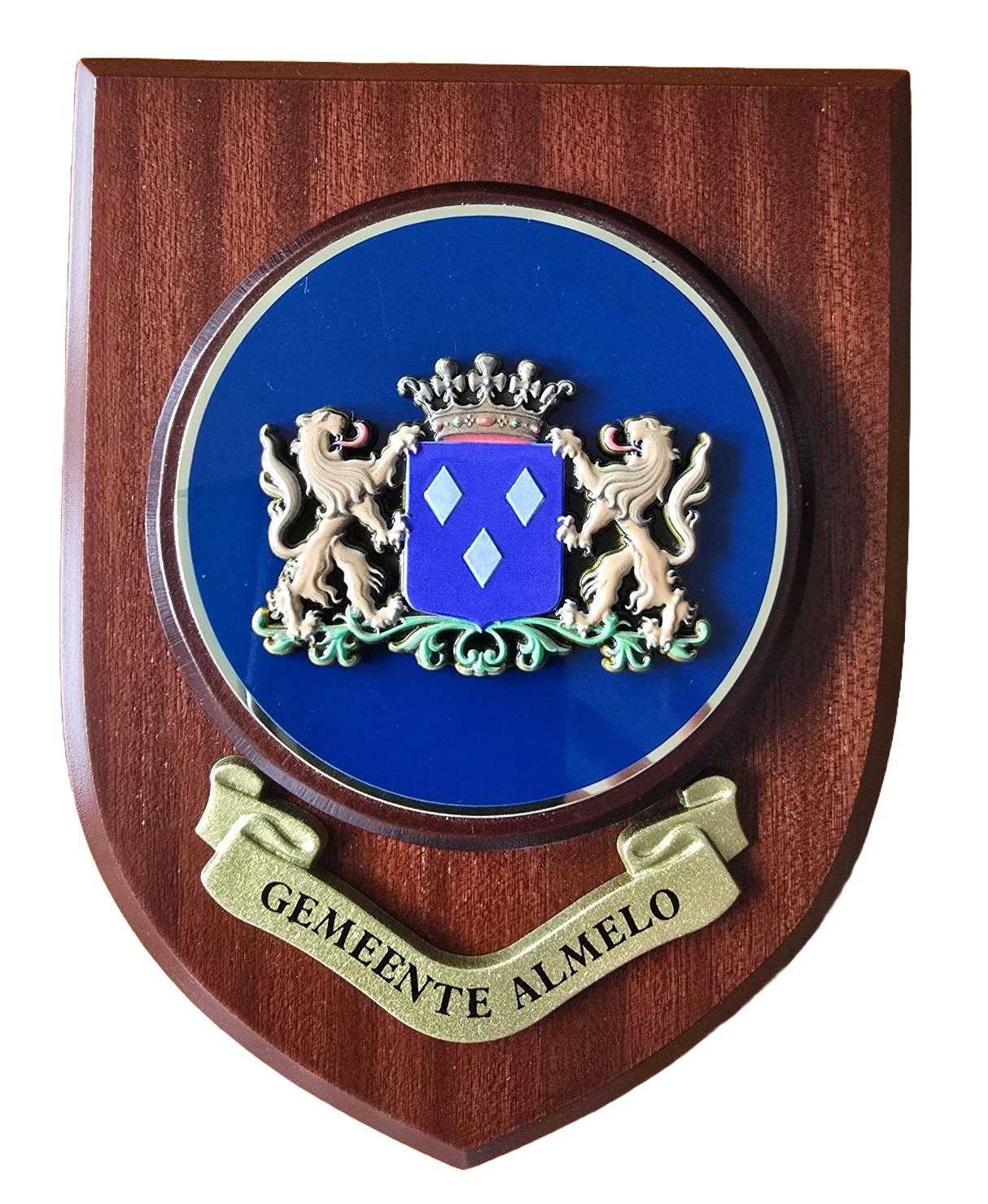 Wapenschild emaille op massief gelakt hout